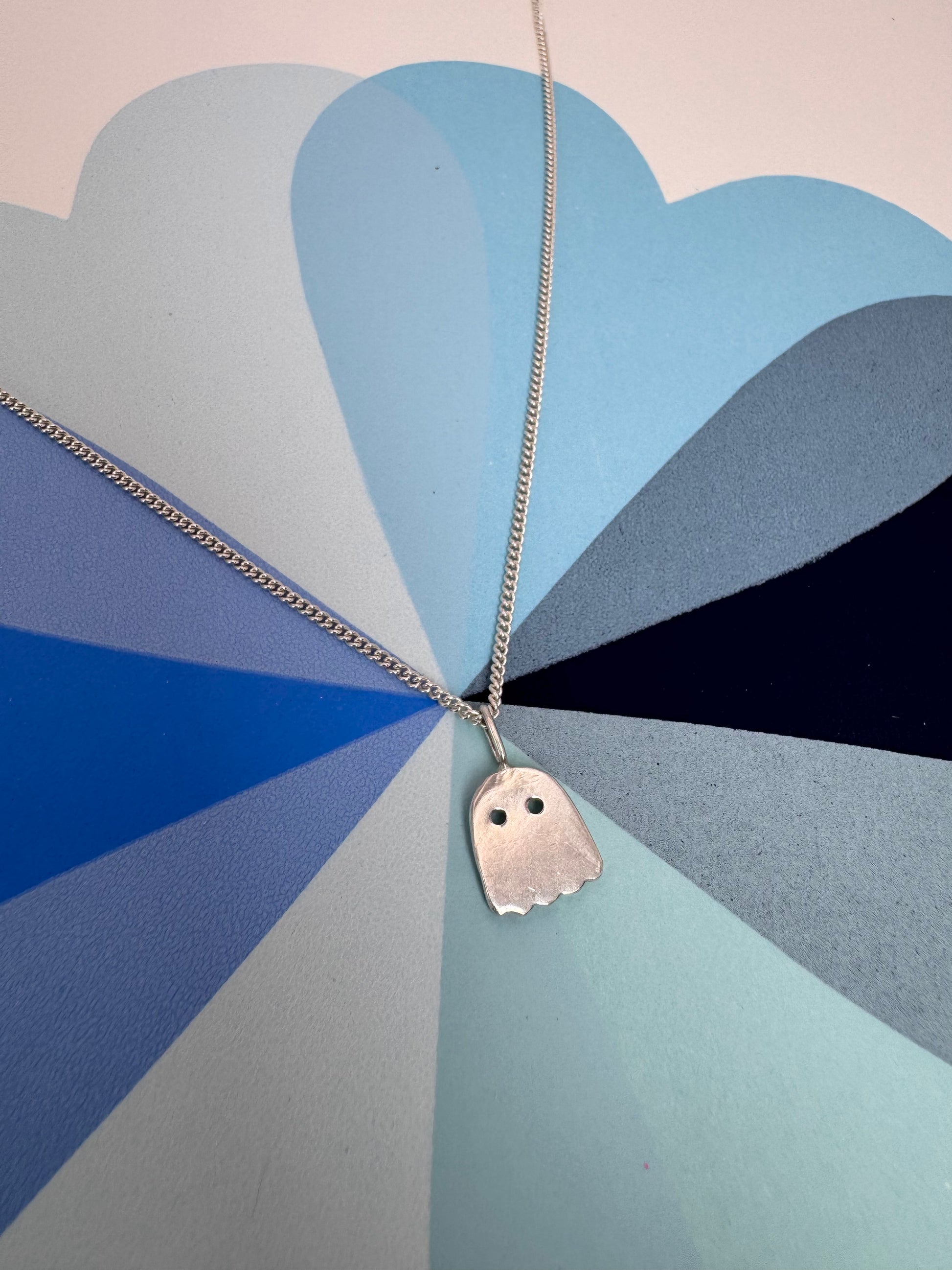 Inspired by Hannah Carvell's quirky and individual style, the silver teeny tiny ghost is hand cut and adds a lot of fun to your style. Choose your length of silver chain here, or fancy adding a splash of colour - choose from one of the beaded necklaces!
